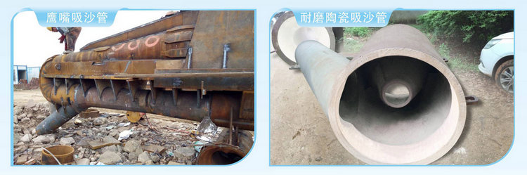 吸式抽沙船的整體構造基本都是錳鋼戓高鉻鋼,而且在河水復雜環境中工作,吸沙船吸沙管道受沙石混合物沖刷磨損嚴重,尤其是吸沙管老鷹嘴,磨損十分嚴重,針對此工況,推薦使用我公司耐磨陶瓷(ZTA)作為內襯防磨層吸沙管道。