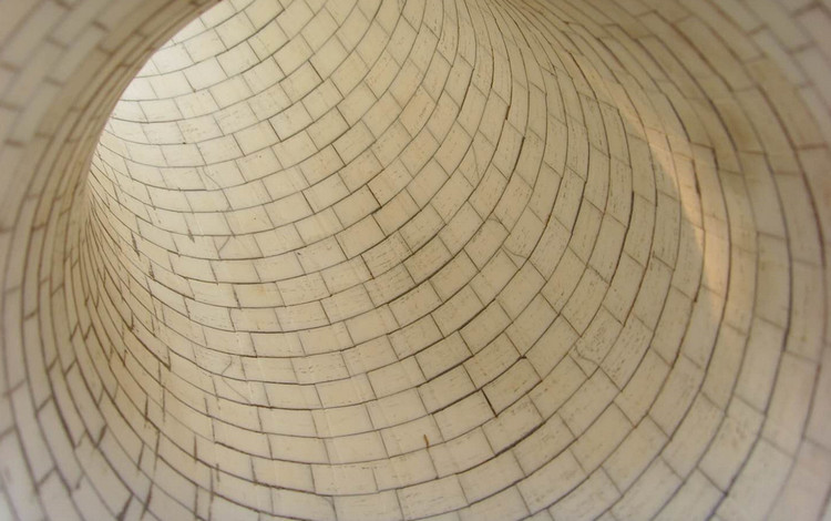 耐磨陶瓷鋼管由鋼管、粘膠及耐磨陶瓷三層組成,鋼件采用20#整體熱彎成型(區(qū)別于離心澆鑄管道焊接或卷板成型),陶瓷采用與清華聯(lián)合研發(fā)的350度耐溫?zé)o機(jī)粘膠粘接在鋼件內(nèi)壁,工藝上由傳統(tǒng)直接粘貼改為采用每圈錯(cuò)縫拱接安裝(這種工藝早在一千多年前就被應(yīng)用于橋梁建設(shè)中),經(jīng)過加溫固化,形成牢固防磨層。該