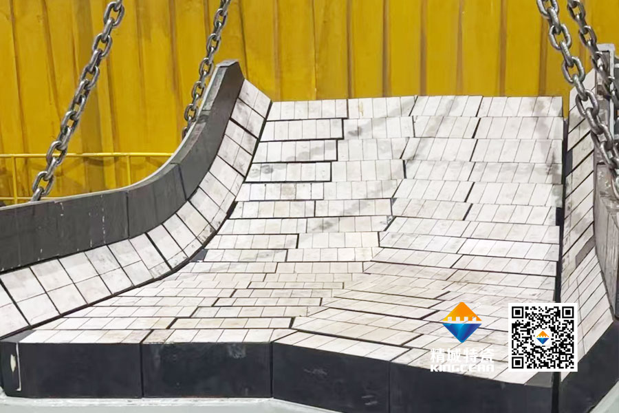 ZTA陶瓷襯板尺寸問(wèn)題。原來(lái),該料斗為多曲面結(jié)構(gòu),陶瓷襯板厚度達(dá)到了112mm,襯板與襯板之間相互交角,我司設(shè)計(jì)陶瓷產(chǎn)品時(shí)采用了先進(jìn)的三維放樣技術(shù)多次校驗(yàn),確保了設(shè)計(jì)與成品的精準(zhǔn)無(wú)誤。然而,多曲面設(shè)備厚陶瓷襯板安裝時(shí)安裝有嚴(yán)格的順序要求,就像拼積木一樣,稍有不慎便可能導(dǎo)致無(wú)法順利安裝,這才是此次安裝問(wèn)題的根源。