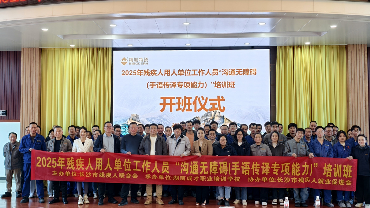 2025年殘疾人用人單位工作人員“溝通無障礙”(手語傳譯專項(xiàng)能力)培訓(xùn)班在湖南精城特種陶瓷有限公司辦公樓五樓會議室順利舉行開班儀式。開班儀式上,湖南成才職業(yè)培訓(xùn)學(xué)校校長周丹卉